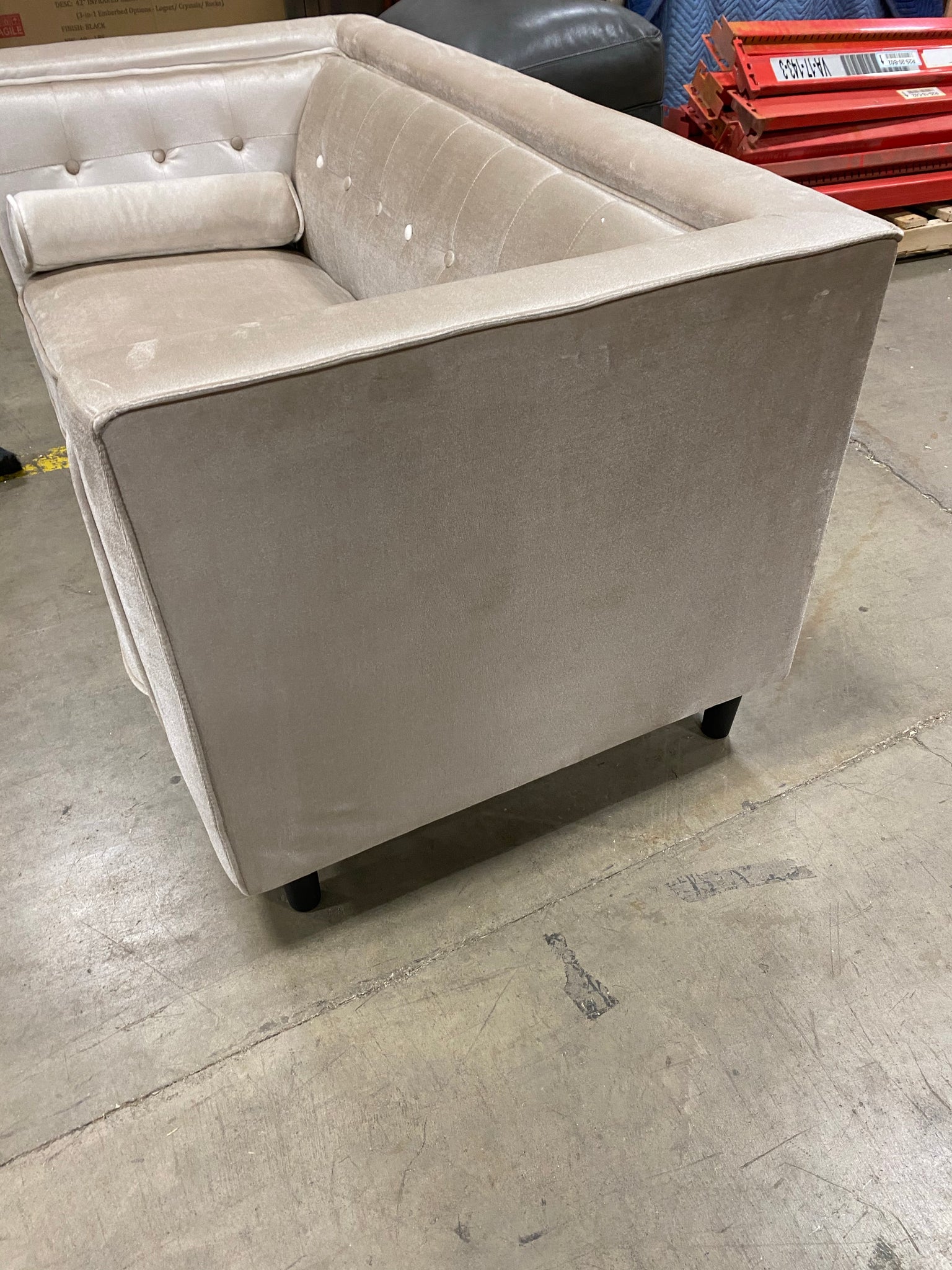 Tufted velvet loveseat in Beige. Assembled.