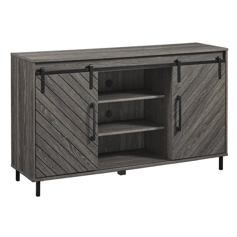 Open box item- In box tv stand in Gray Oak finish. Assembly required.