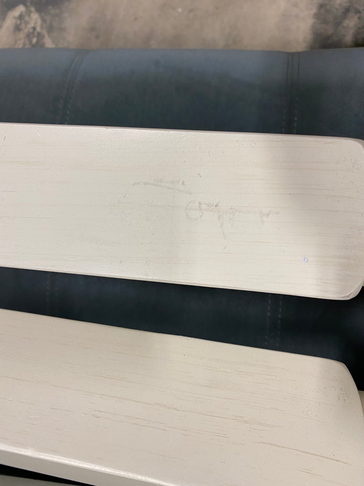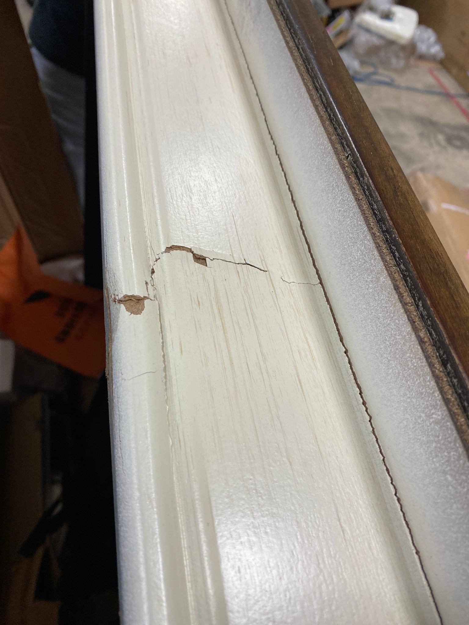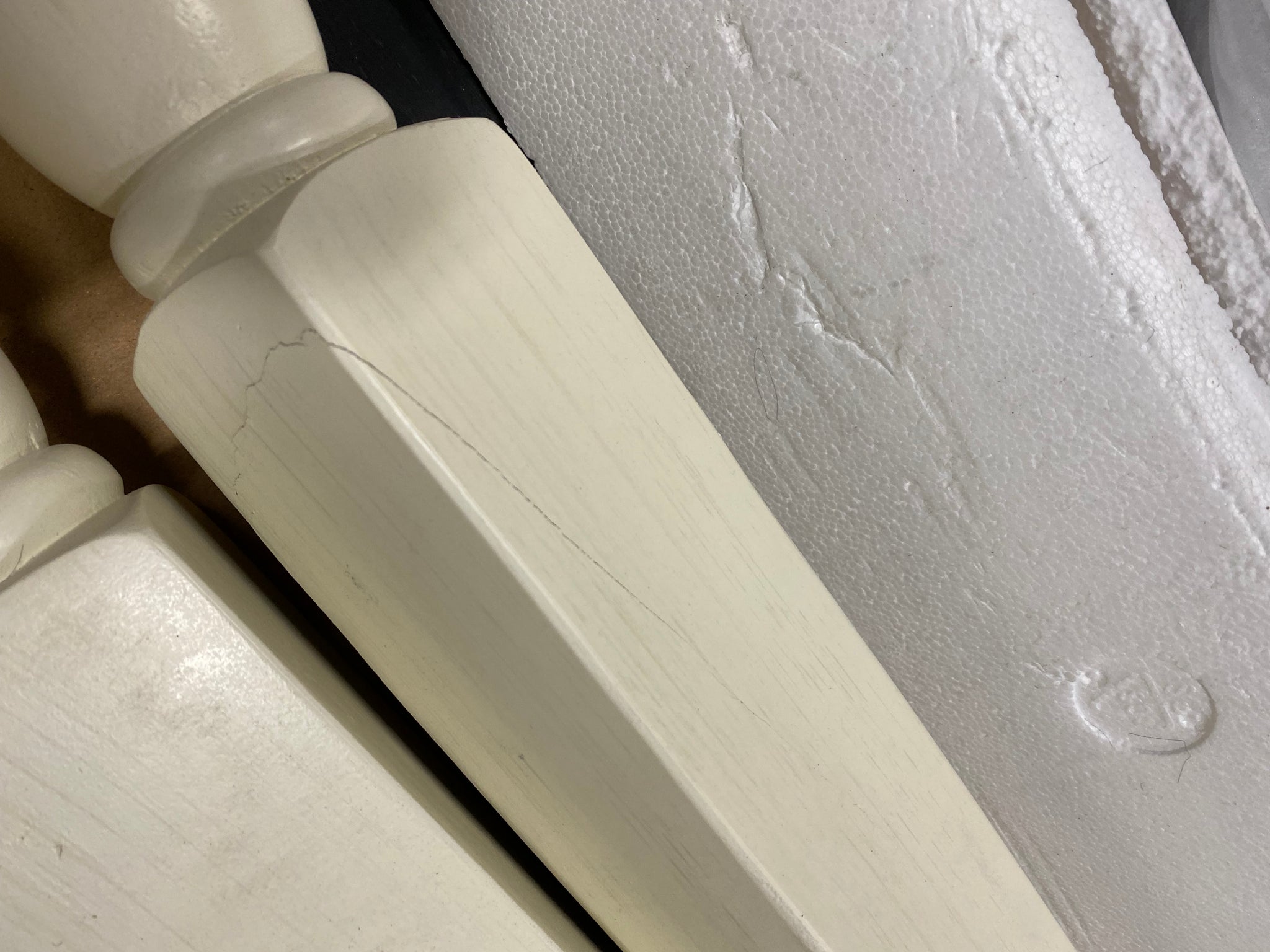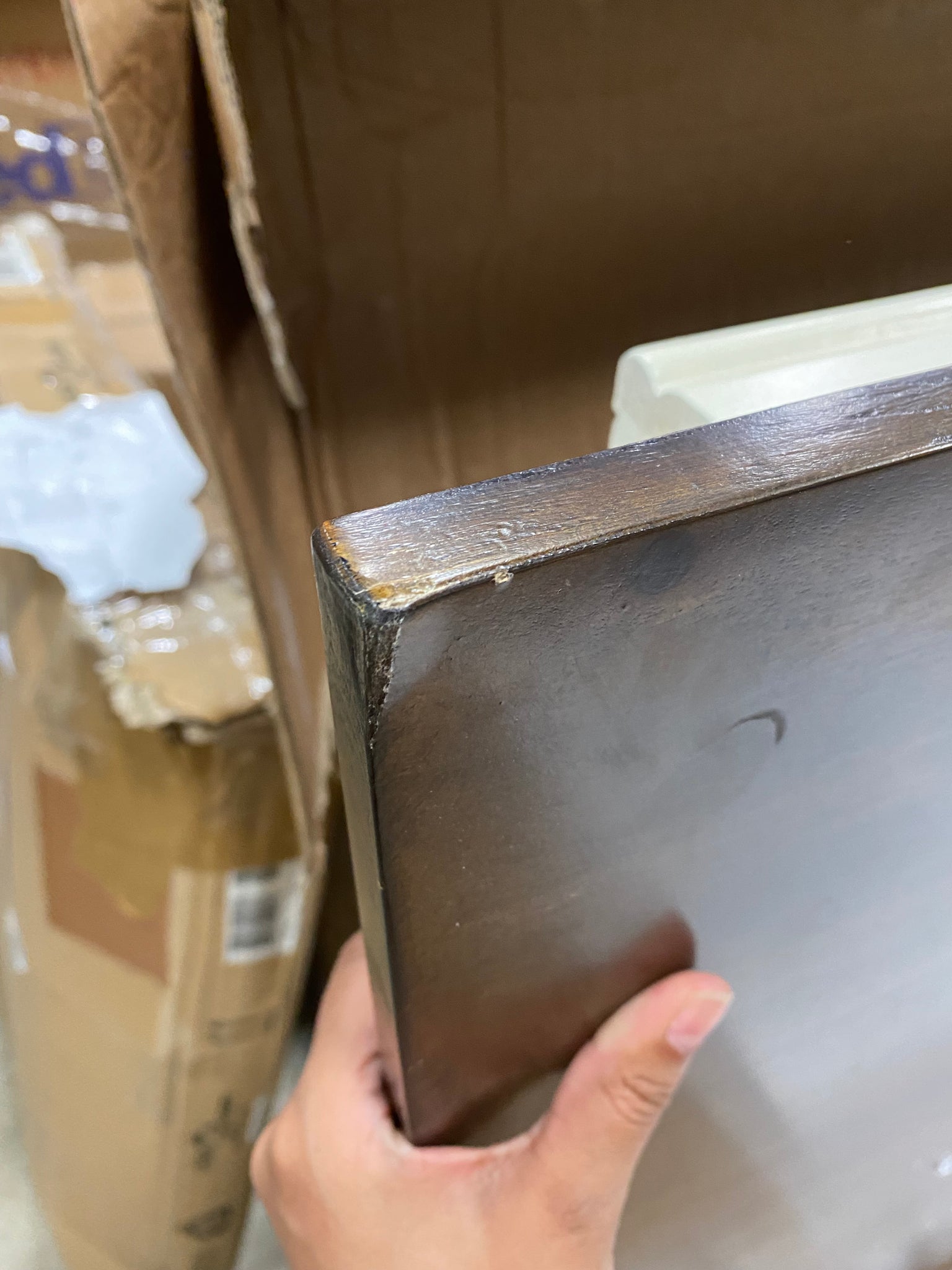 Note: AS IS Condition: The item has hairline crack on 1 leg. All legs are slightly dinged/scuffed. The table has damage on side bottom edge. Slight dings on 1 corner edge and 1 side edge. See photos.