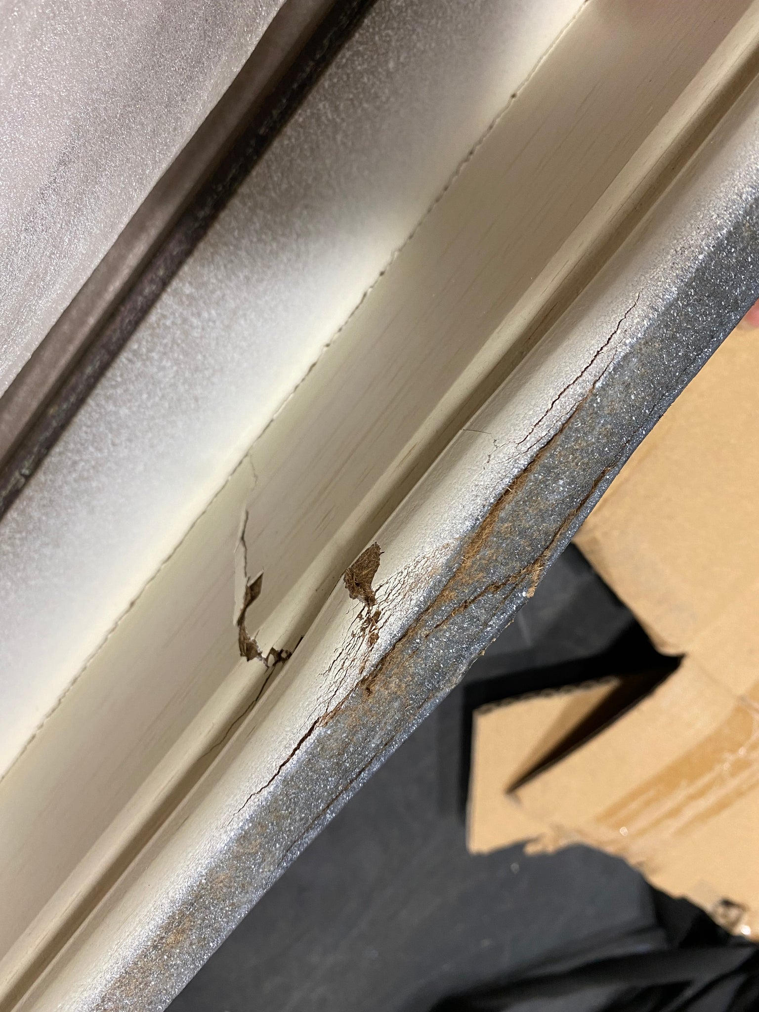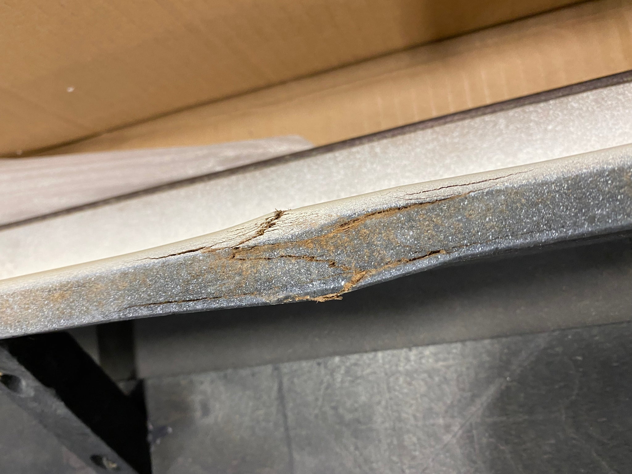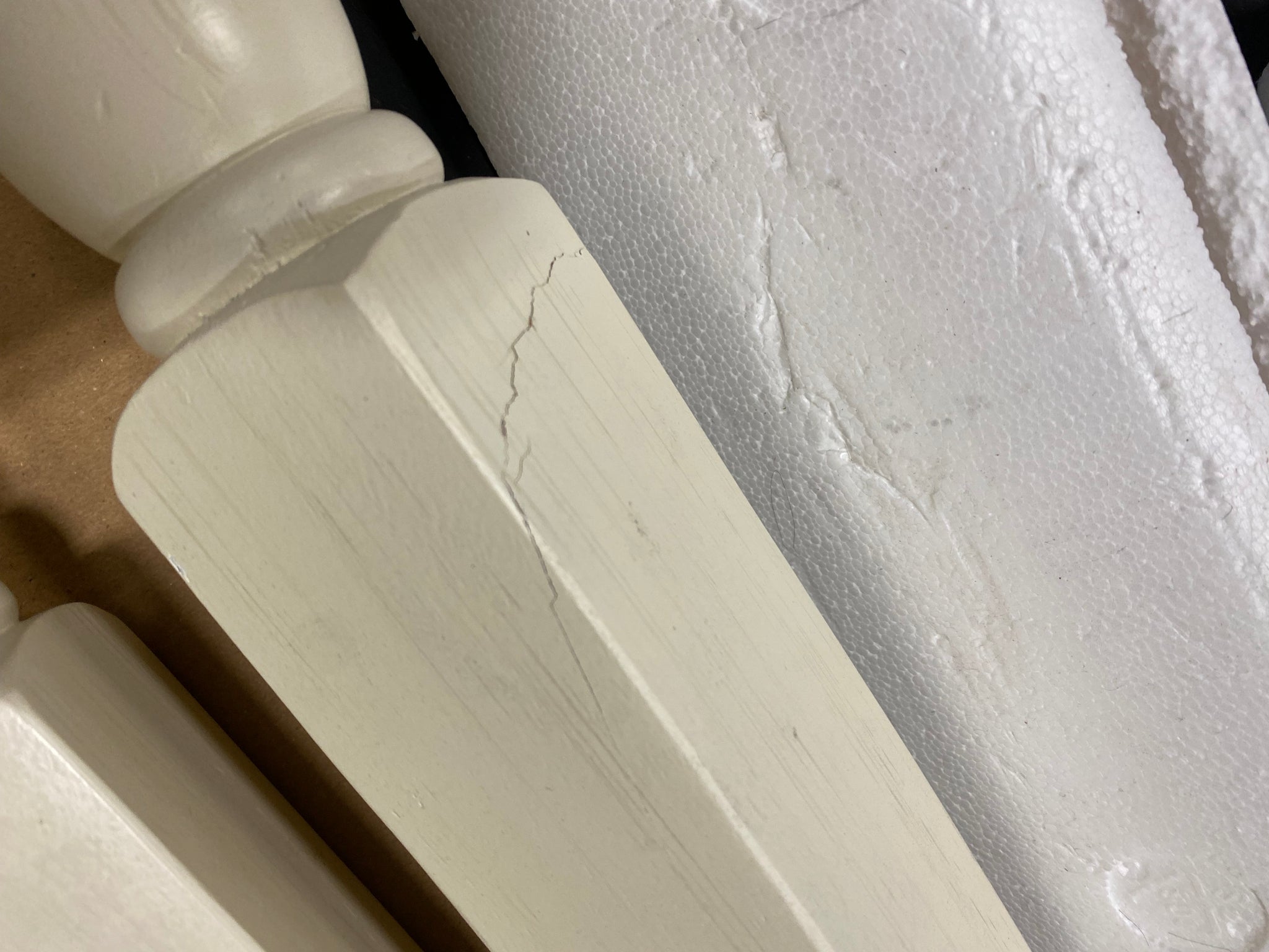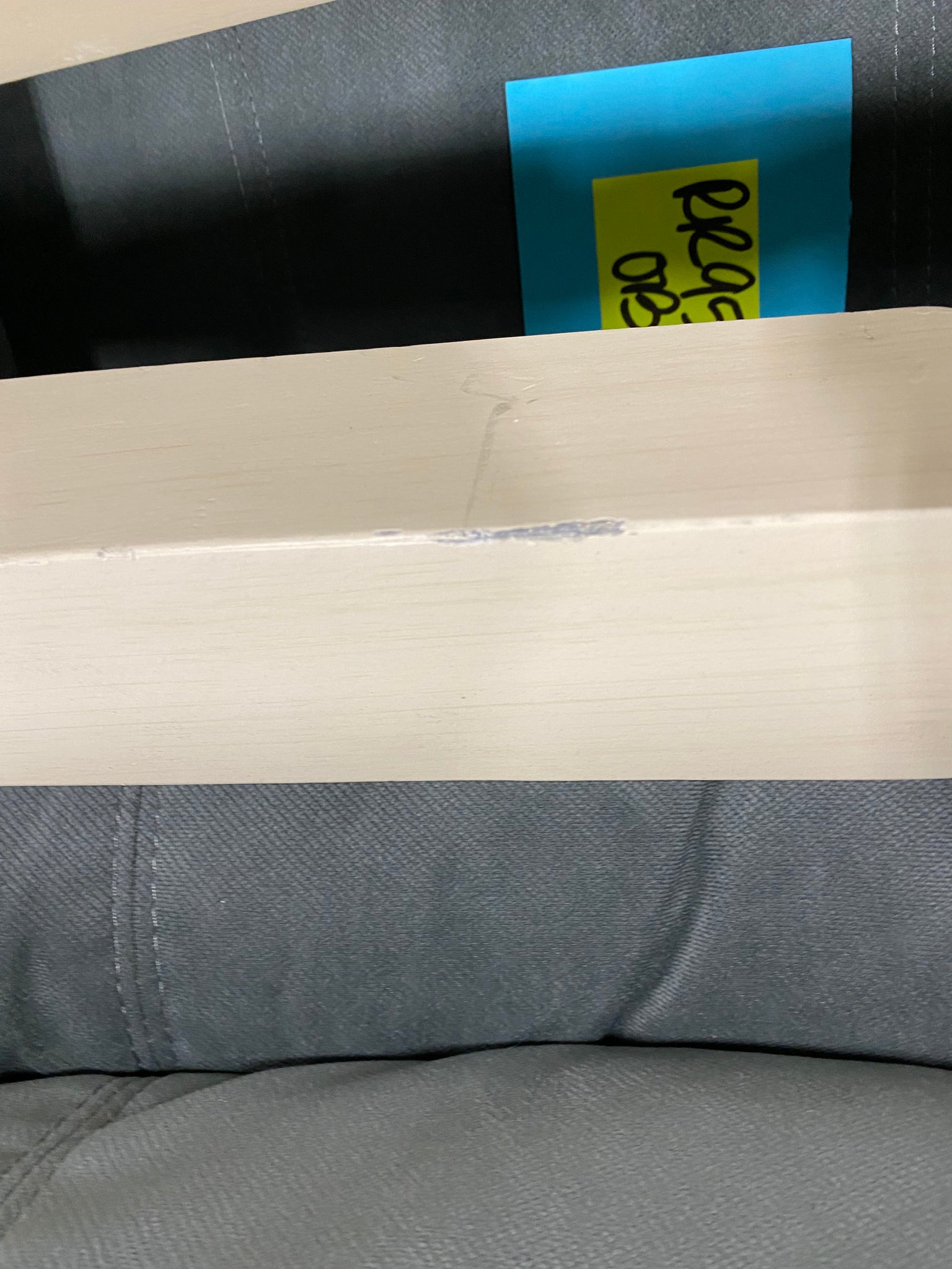 Note: AS IS Condition: The item has hairline crack on 1 leg. All legs are slightly dinged/scuffed. The table has damage on side bottom edge. Slight dings on 1 corner edge and 1 side edge. See photos.