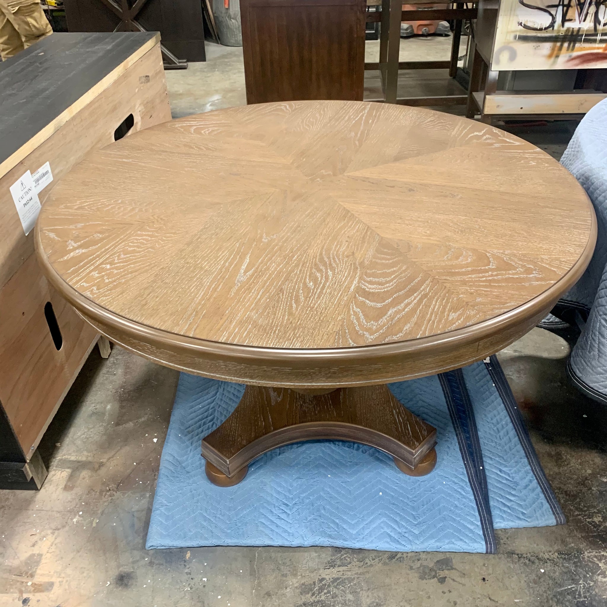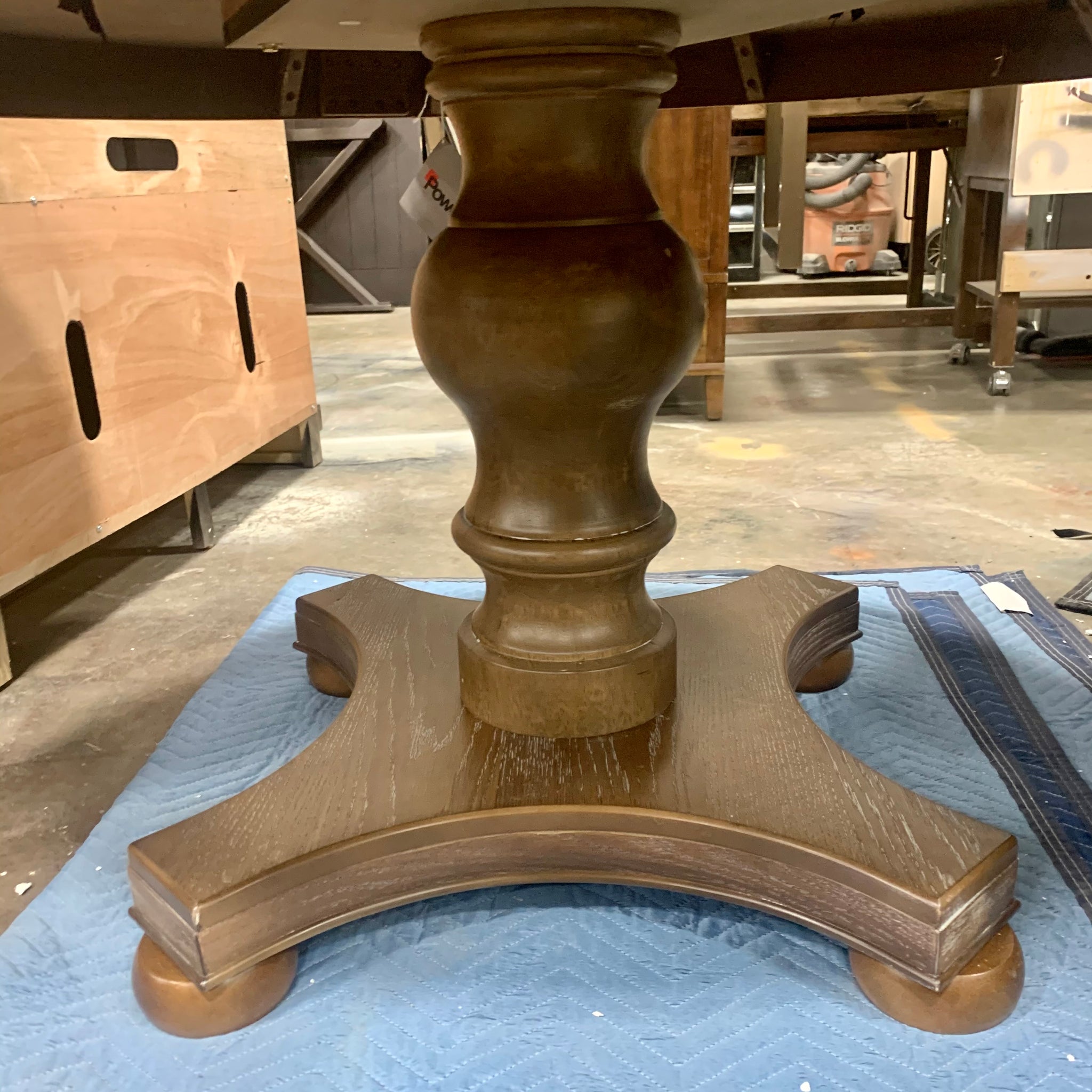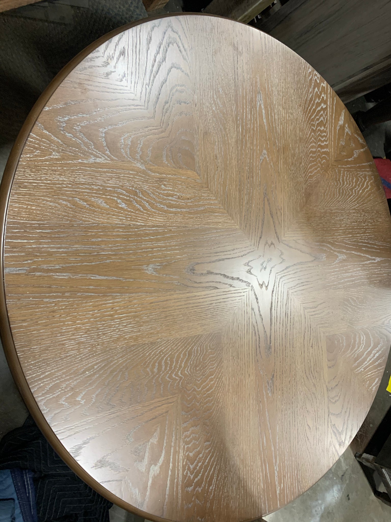 Fully assembled brown solid wood dining table. Item appears to be in excellent condition.