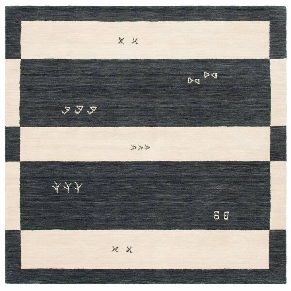 6ft square color block geometric pattern area rug in black/cream. Wrapped in plastic.