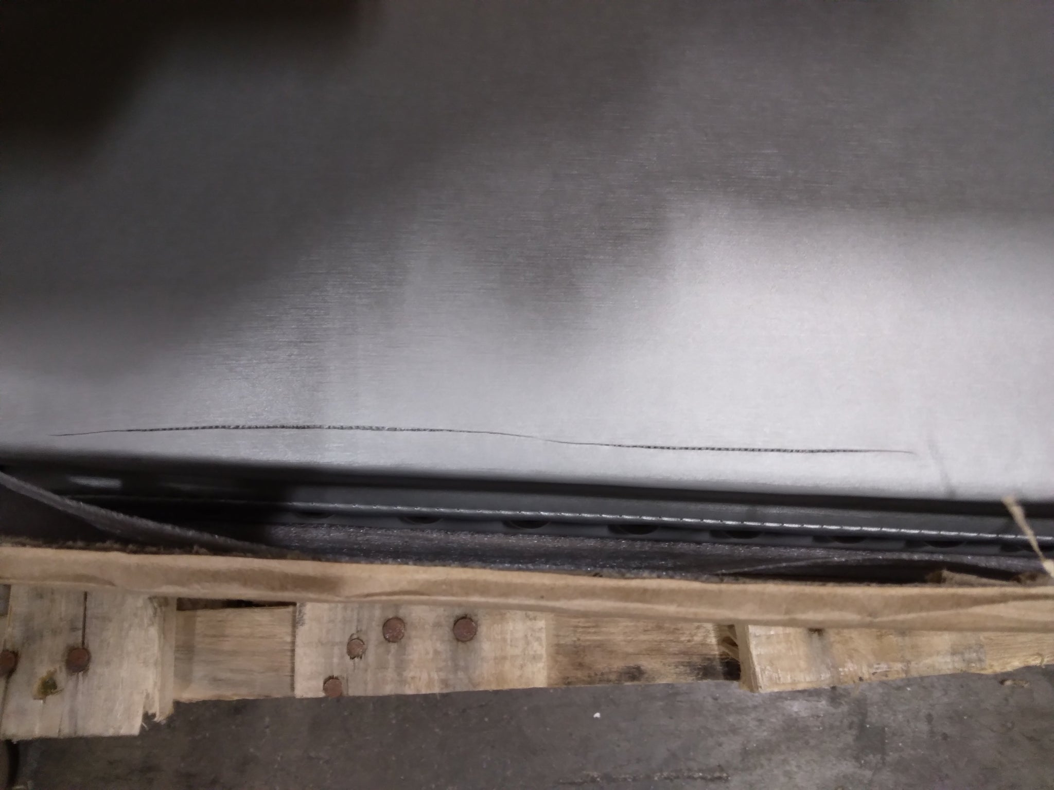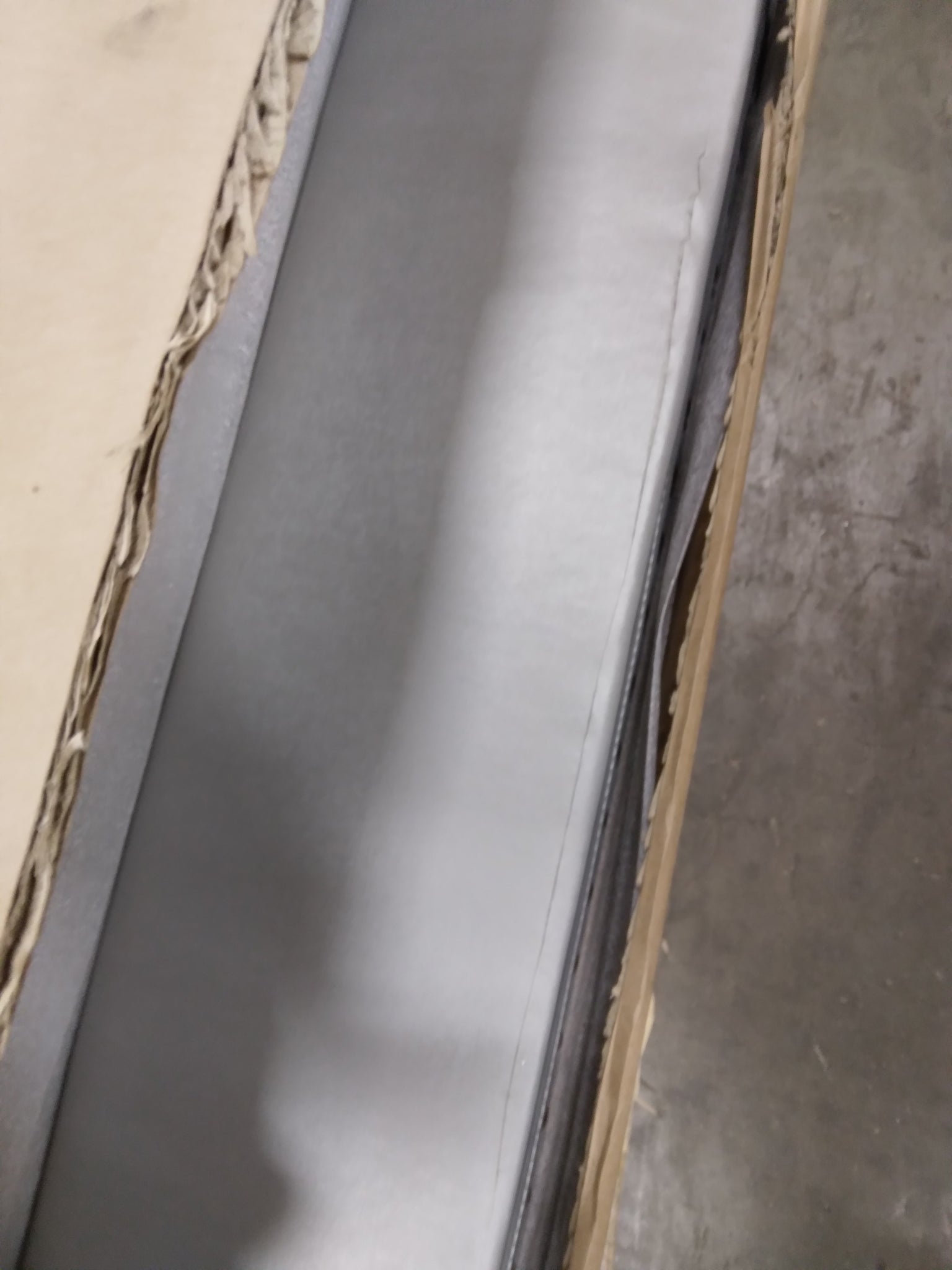 Open Box, The color is silver faux leather, Size: queen, AS IS: Previously opened. There is a large cut in the faux leather at the top of the headboard. See for photos.