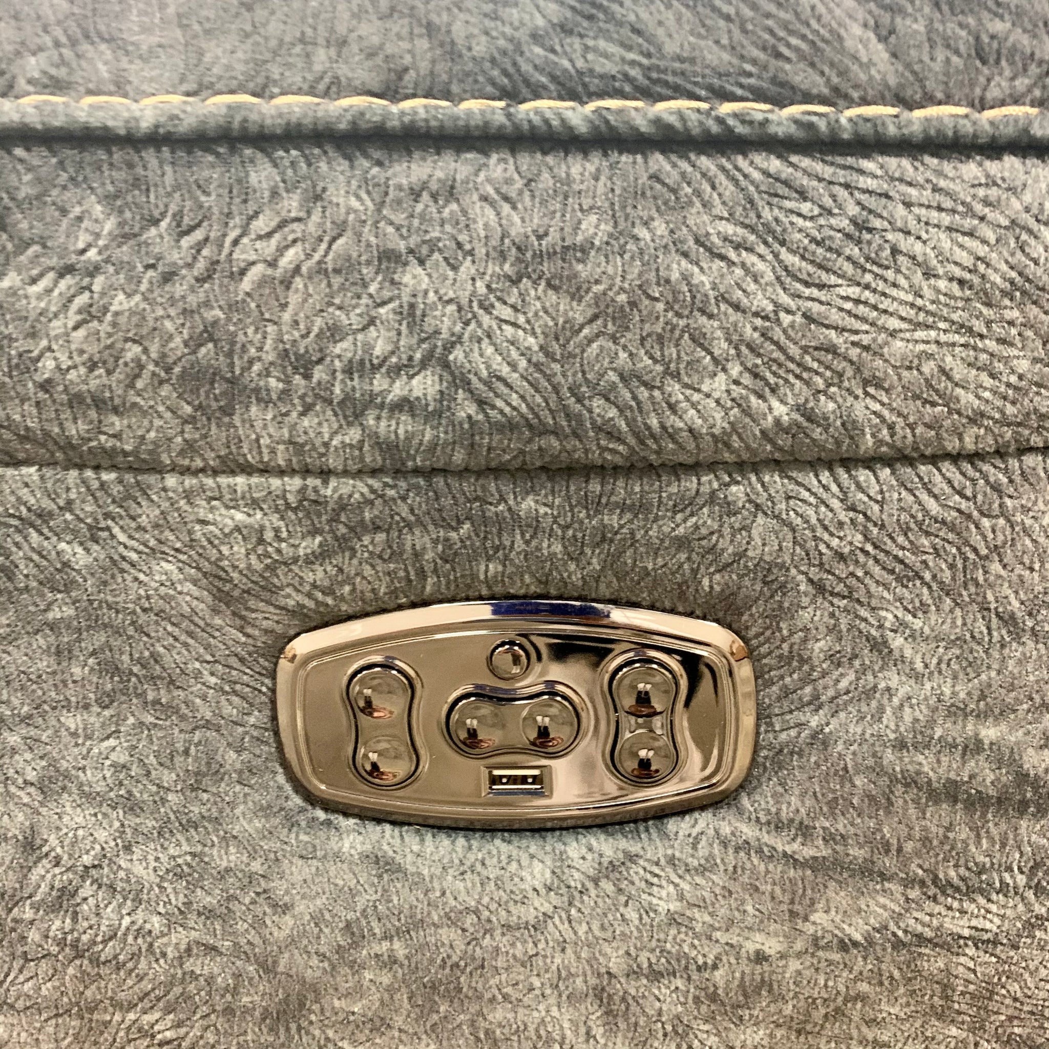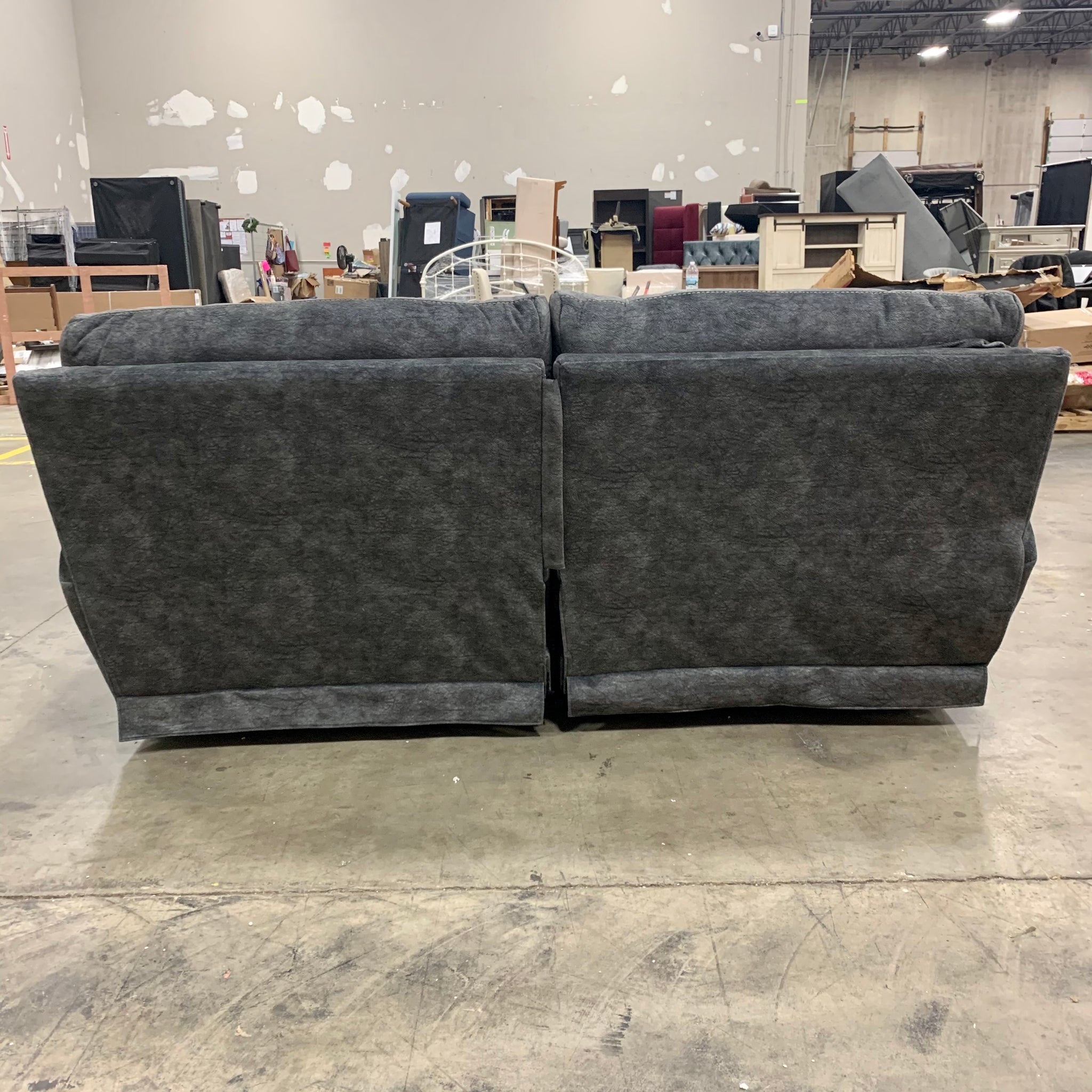 Out of box item. Fully assembled power reclining arm sofa upholstered in 100% polyester in the color smoke. This sofa seats 2 people and has a weight capacity of 500 pounds. All functions have been tested and are running properly.