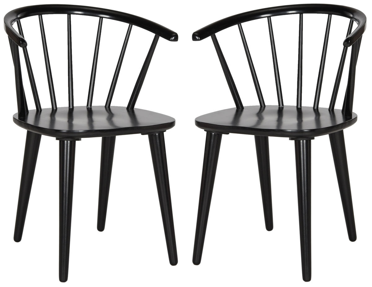 Set of 2 dining chairs crafted of sustainable rubber wood in a sleek black finish. Assembly is required. Items are in original packaging.