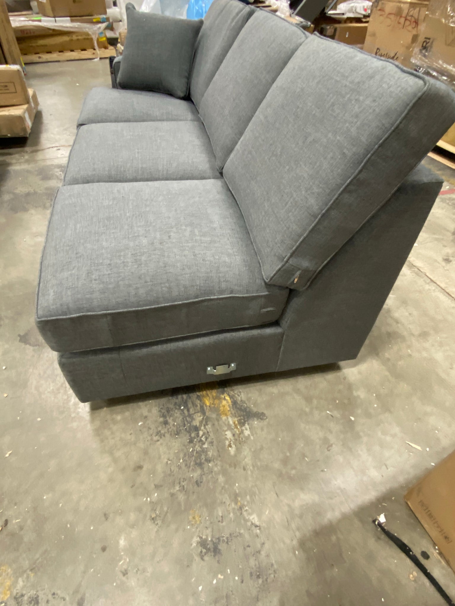 Sofa Sectional Piece in Gray linen fabric. Comes with 1 throw pillow. Item appears to bed in excellent condition.