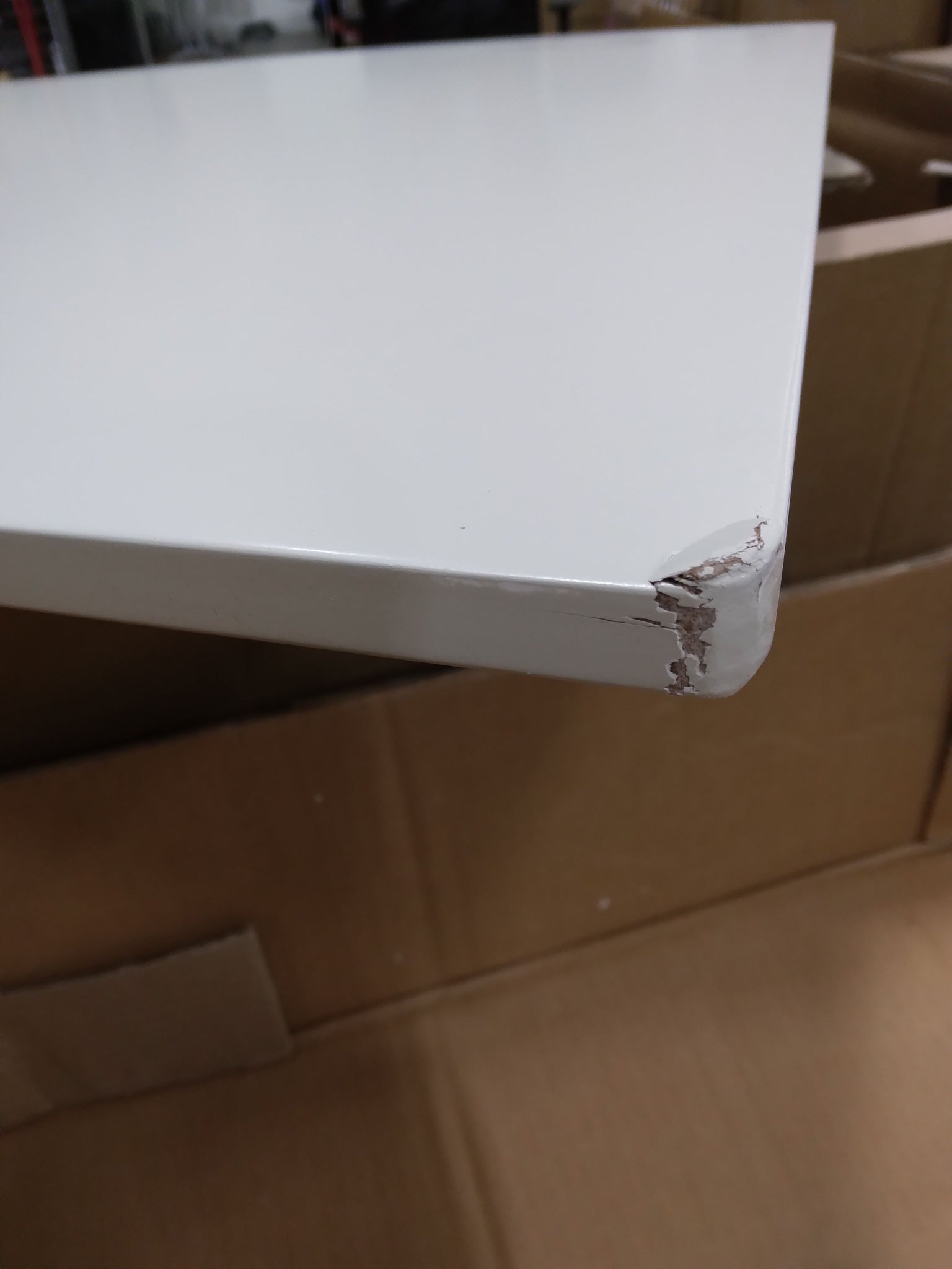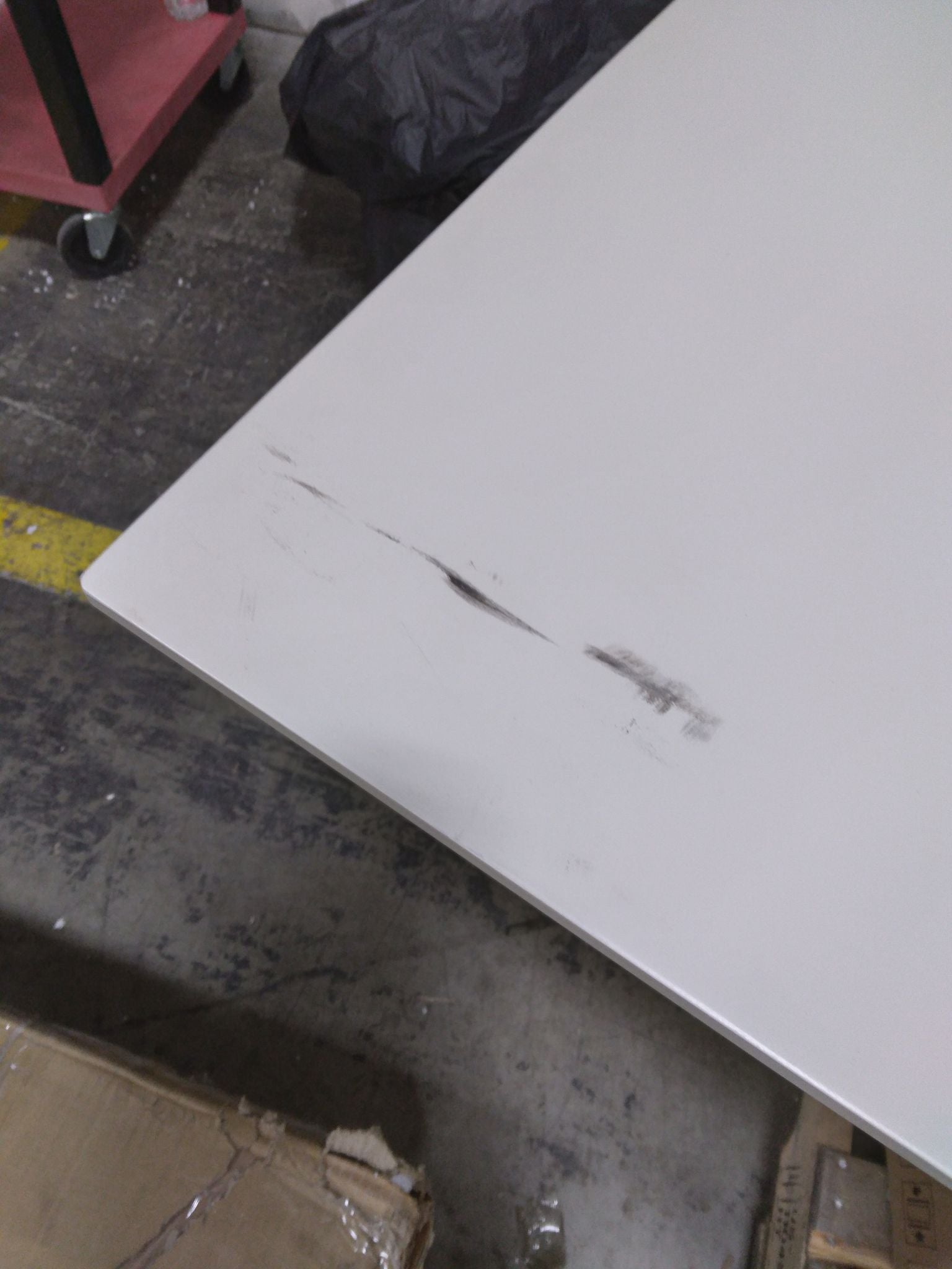 Open Box, The color is pecan, AS IS: Large black scuffs across the top of the table and the backside as well. 2 chips on 2 corners of the table top. See for photos.