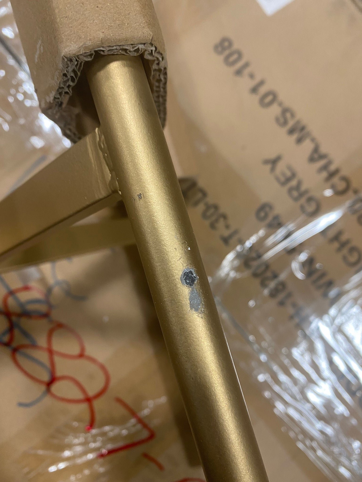 Open Box, The color is beige/gold, AS IS condition: Slight scuffing/black marks on both planter pots. Scuff on leg of small stand. See photos. Items in otherwise good condition.