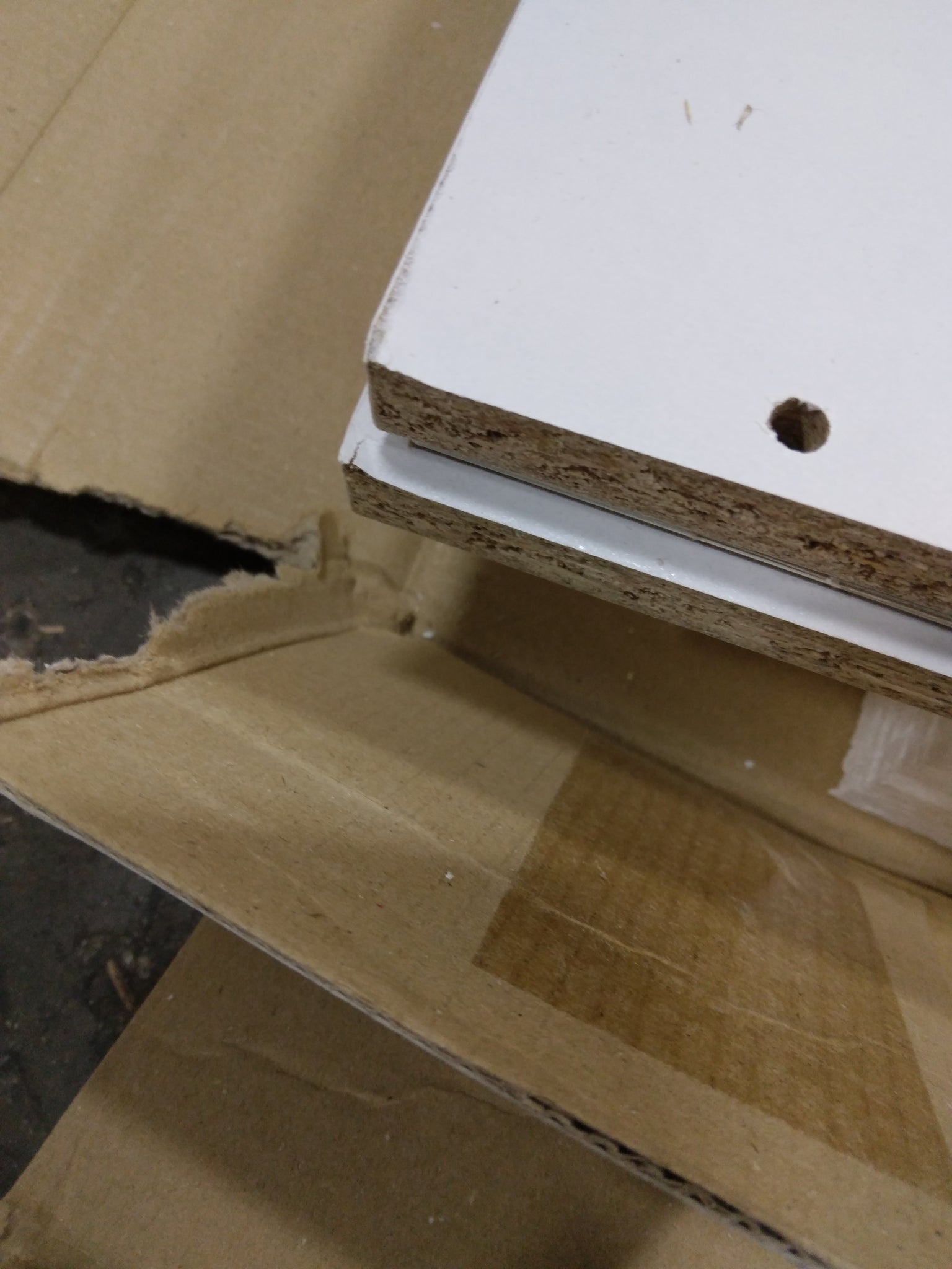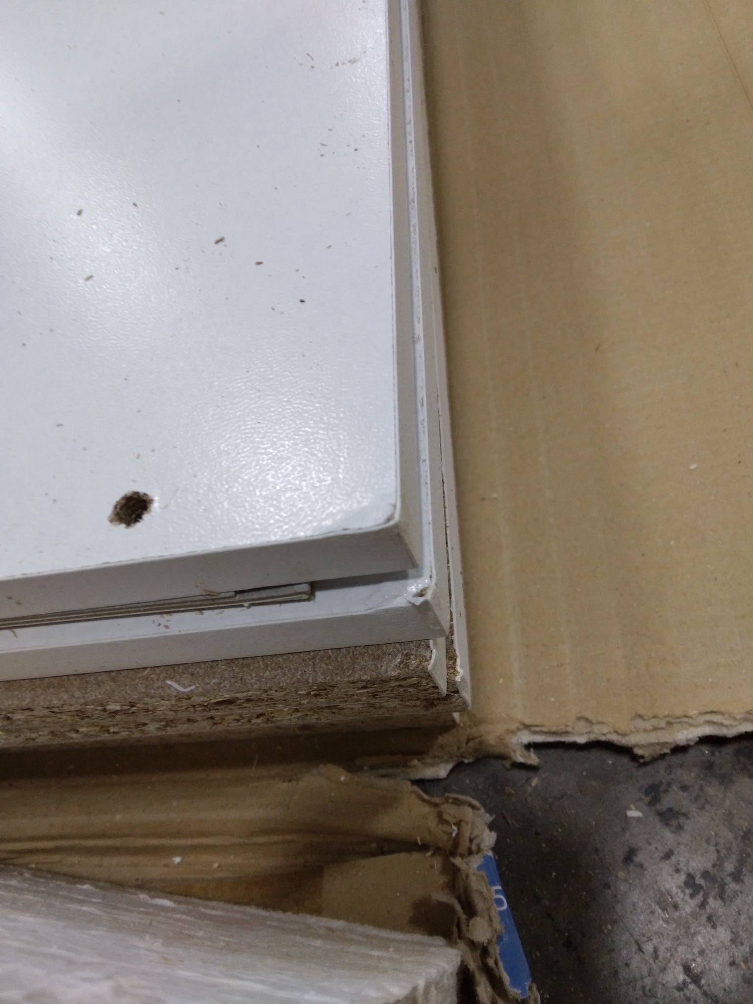 Open Box, The color is white, There are slight chips on a couple of corners. See for photos.