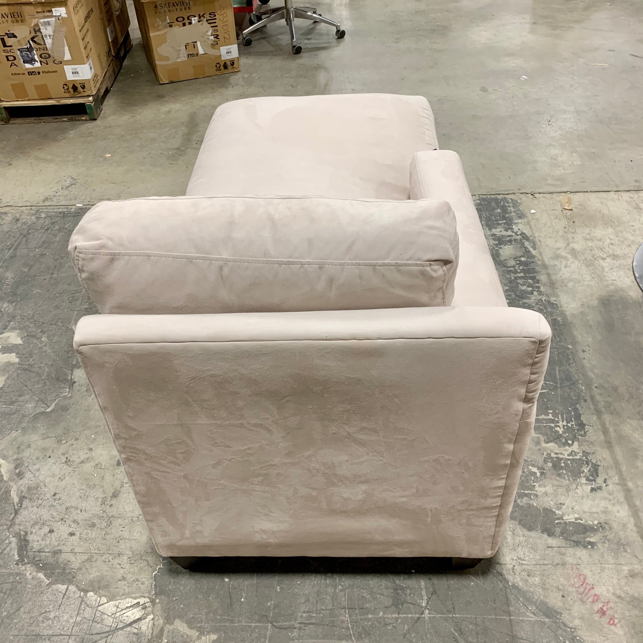 Fully assembled chaise lounge ONLY with microsuede oyster fabric. Item appears to be in like new condition.