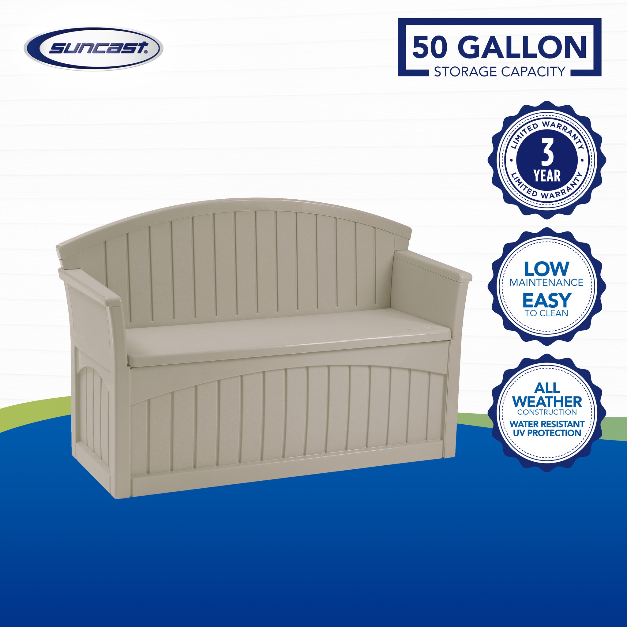 https://www.walmart.com/ip/Suncast-50-Gallon-Resin-Outdoor-Deck-Storage-Bench-for-Patio-Light-Taupe/10848575
