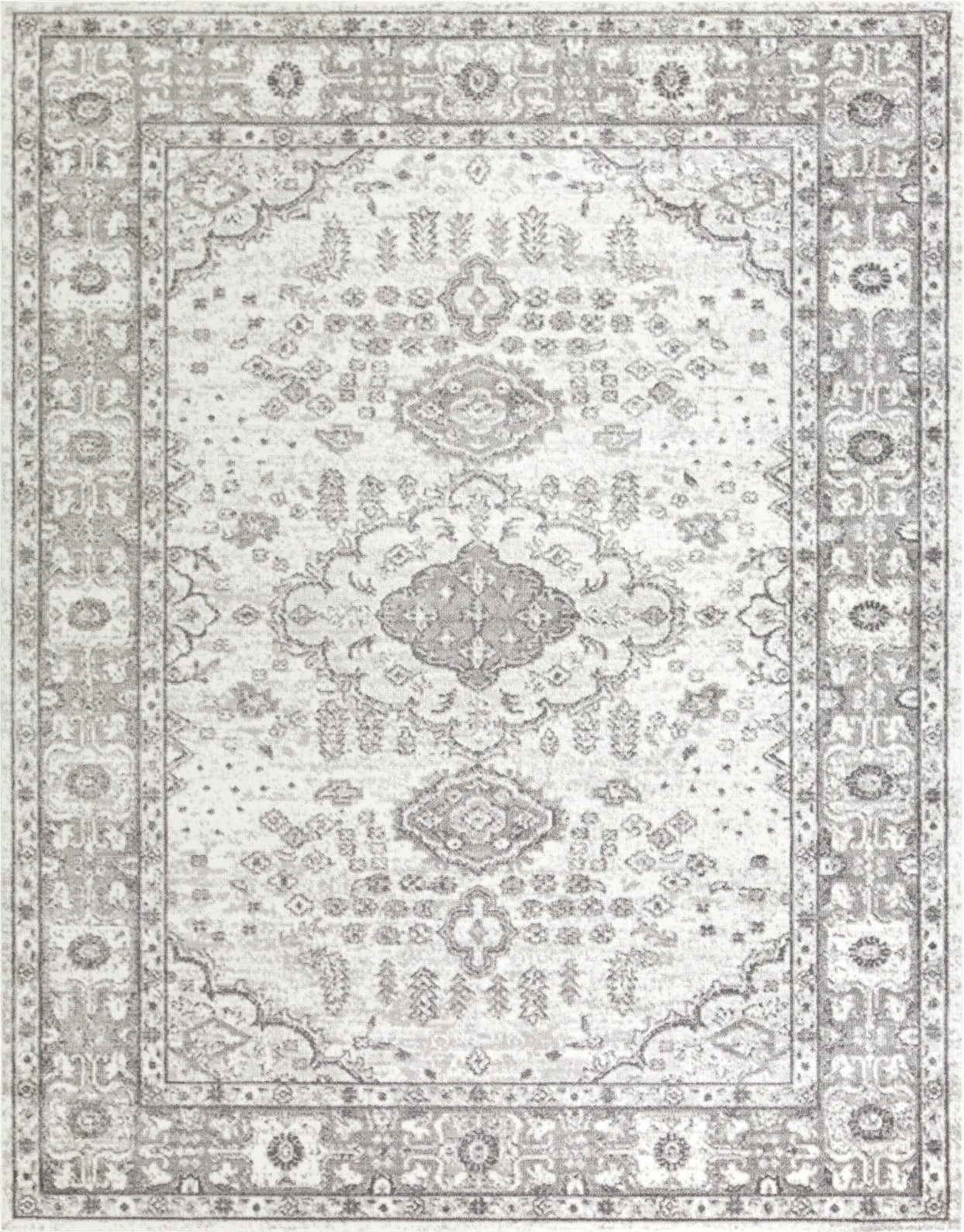 Open Box, The color is cream/light grey, Size: 7'10" x 10'2", Previously opened.