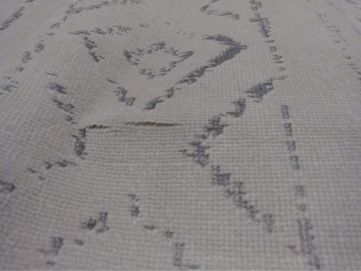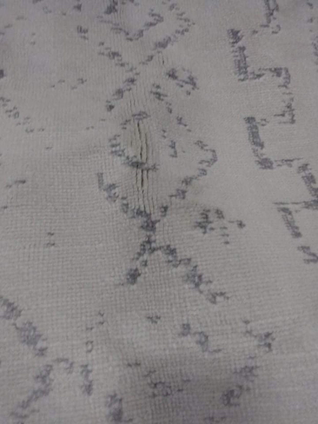 Out of packaging, Size: 9 x 12'3", Will need professionally cleaned and flattened