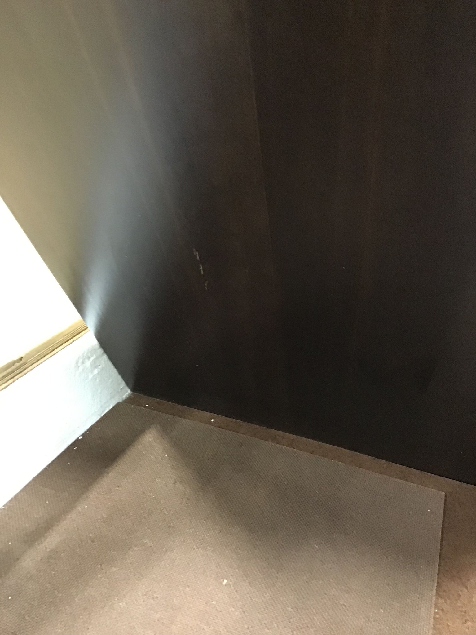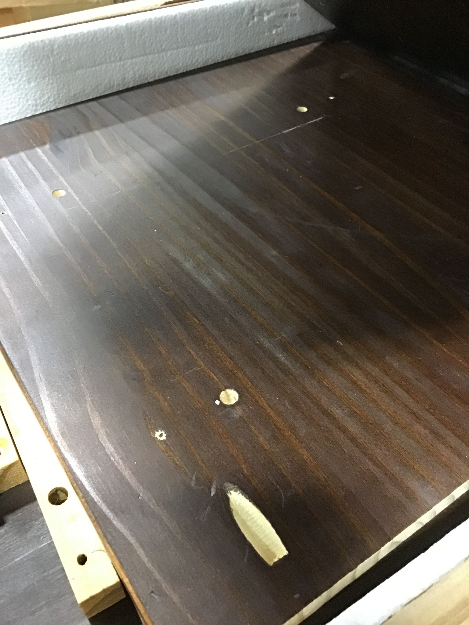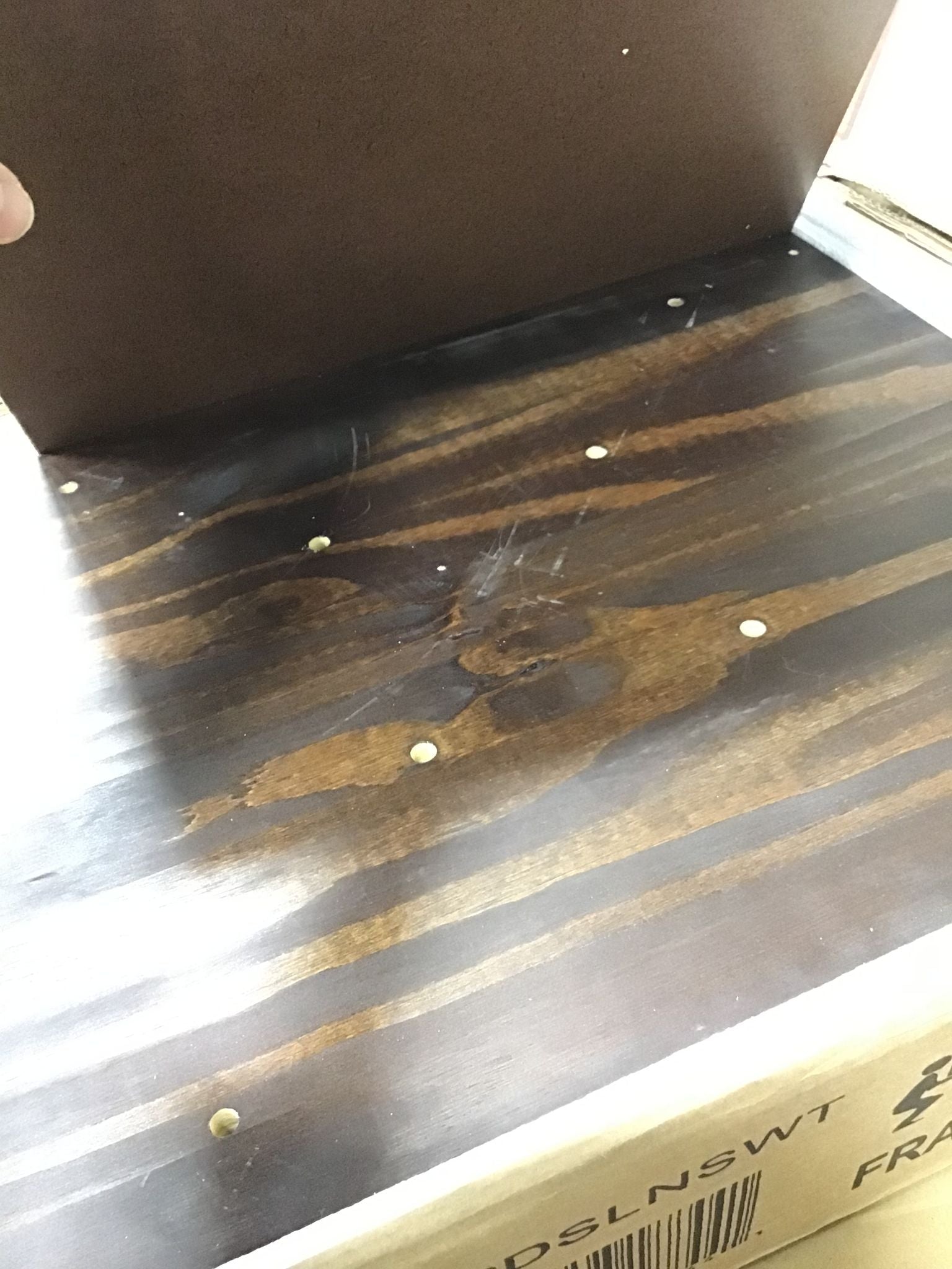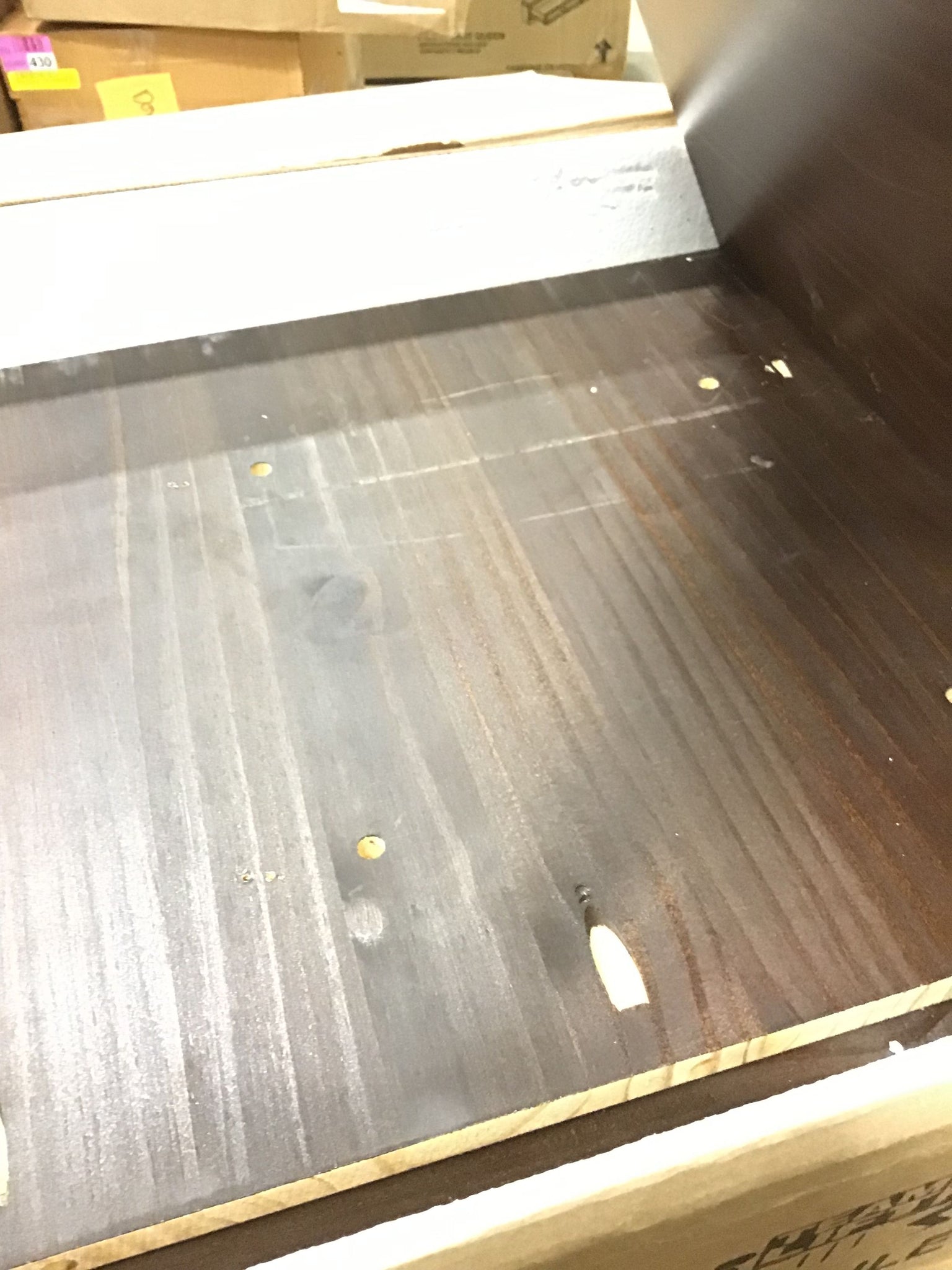 Open box, The color is walnut, Previously opened. Scratches, scuffs and chips throughout pieces. See photos.
