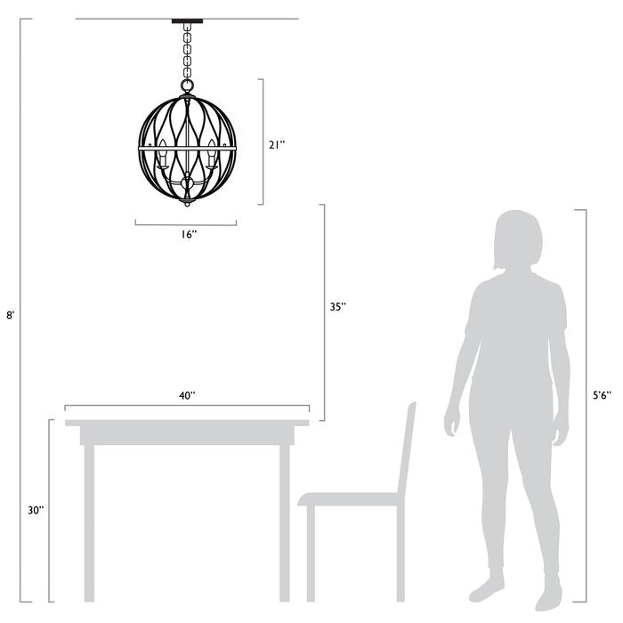 Wanette 3 - Light Unique / Statement Globe Chandelier, Oil Rubbed Bronze #2324HW