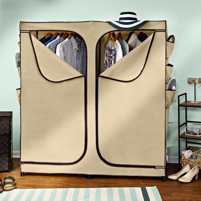 Open box item- In box wardrobe in Tan/Brown. Assembly required.