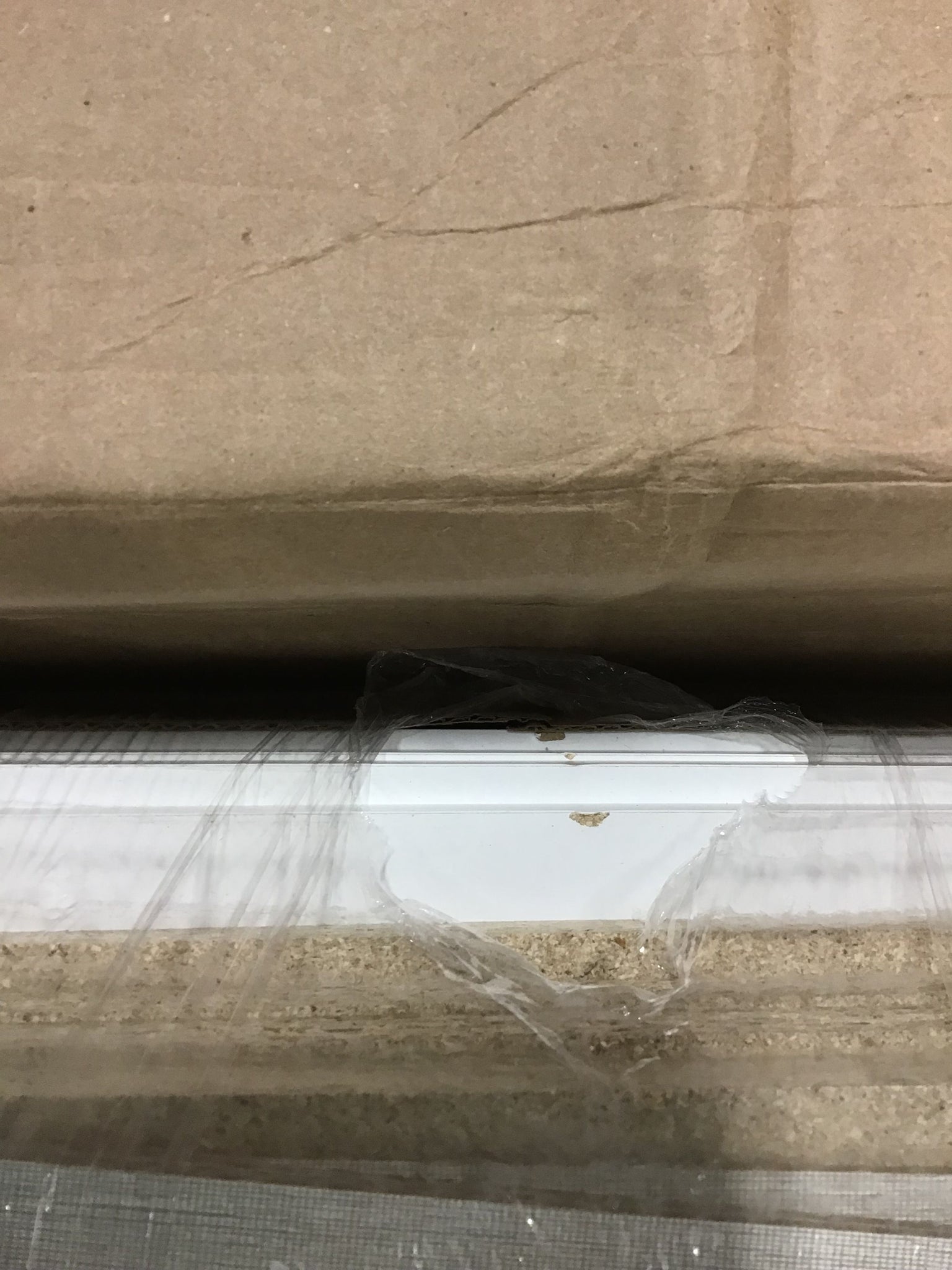Open box, The color is white, Still in manufacturing box. Has some chips on the wood pieces. See IN-HOUSE photos.