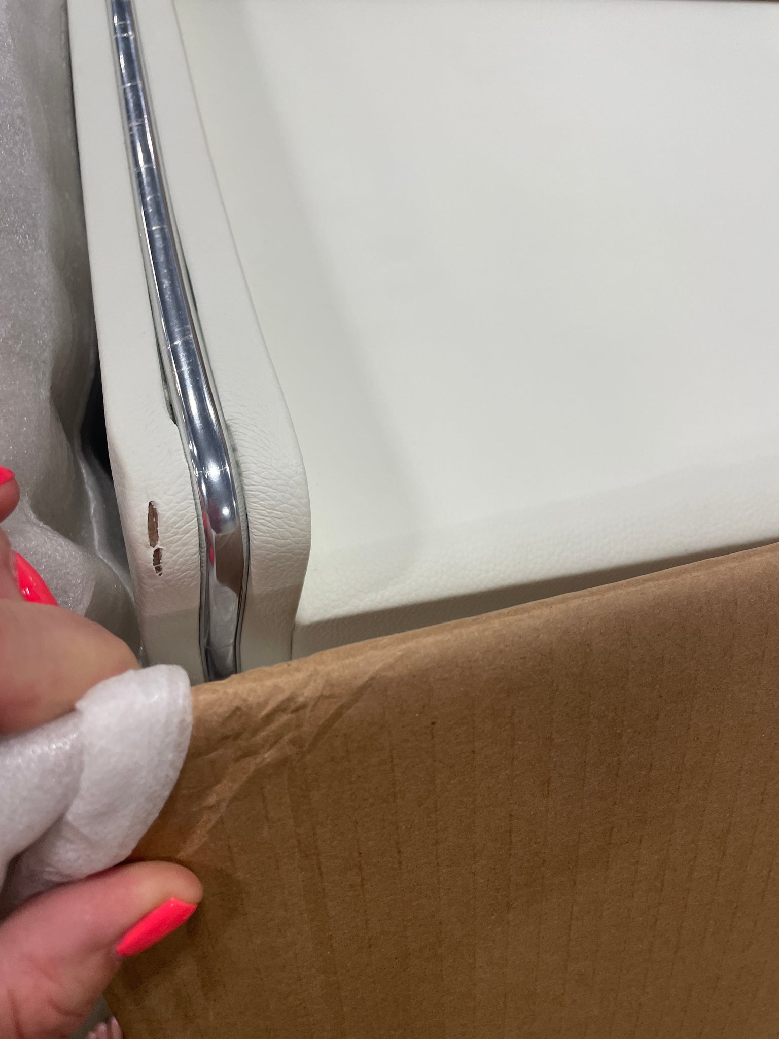 Note: Great condition except for one scrape in the leather finish on the back right of the nightstand, see pics.