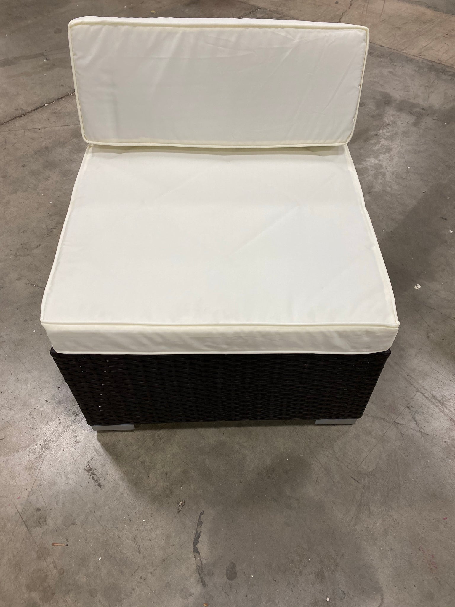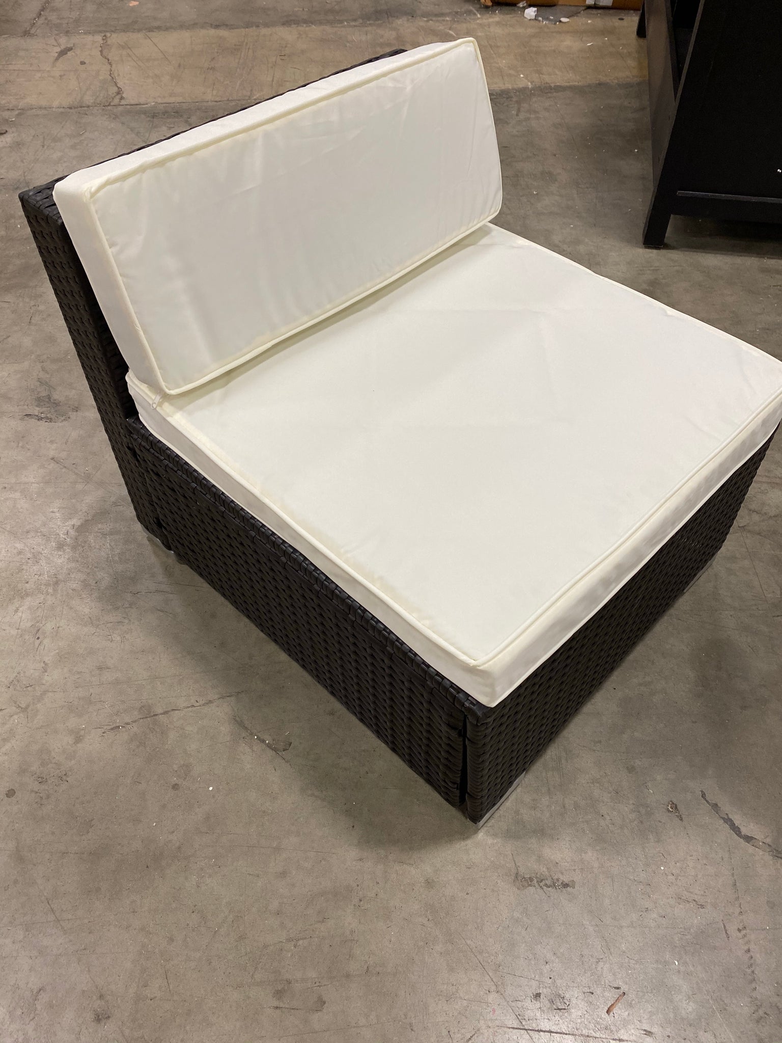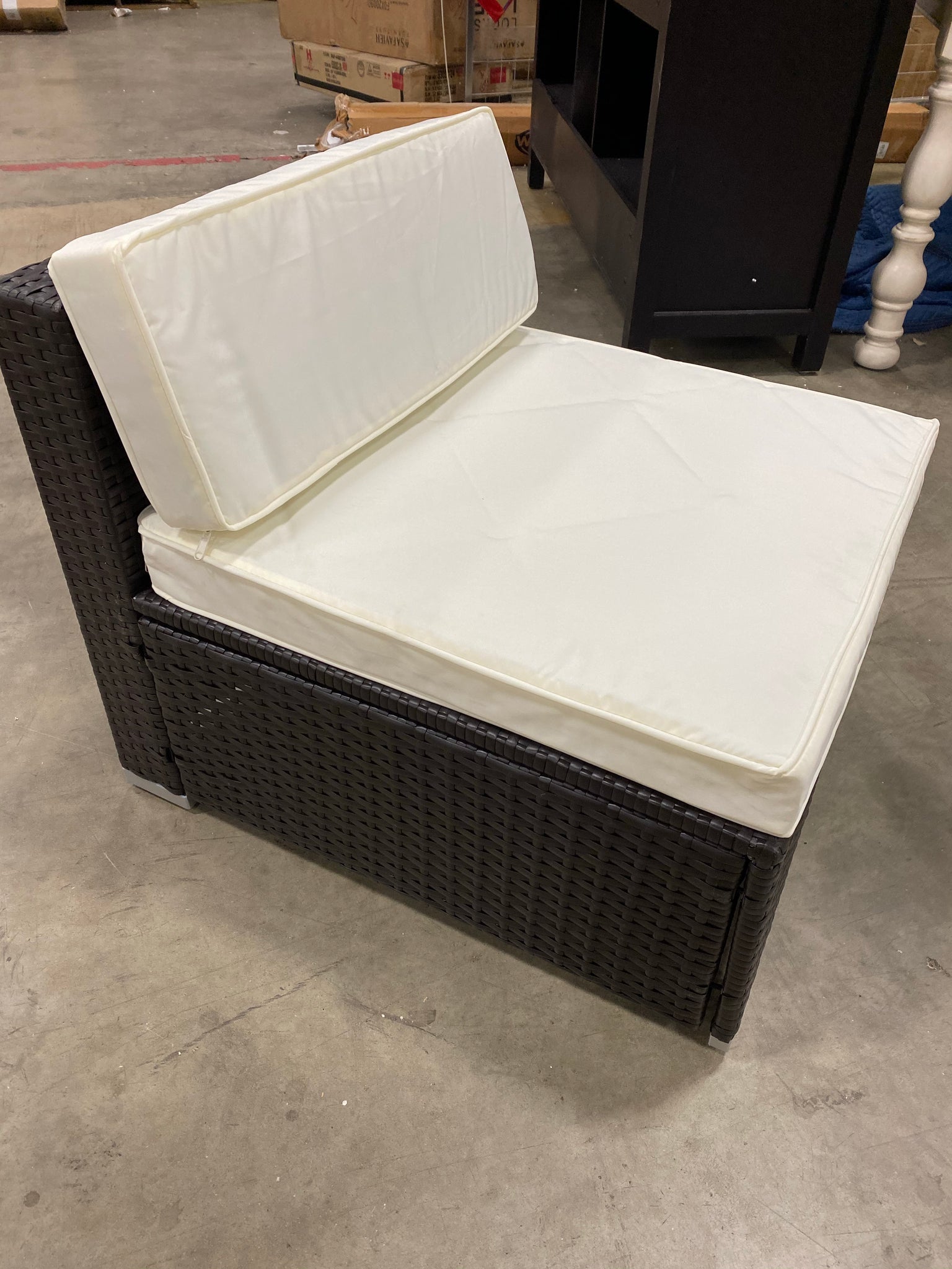 Out of box armless wicker rattan chair in Brown with Natural Cushion.