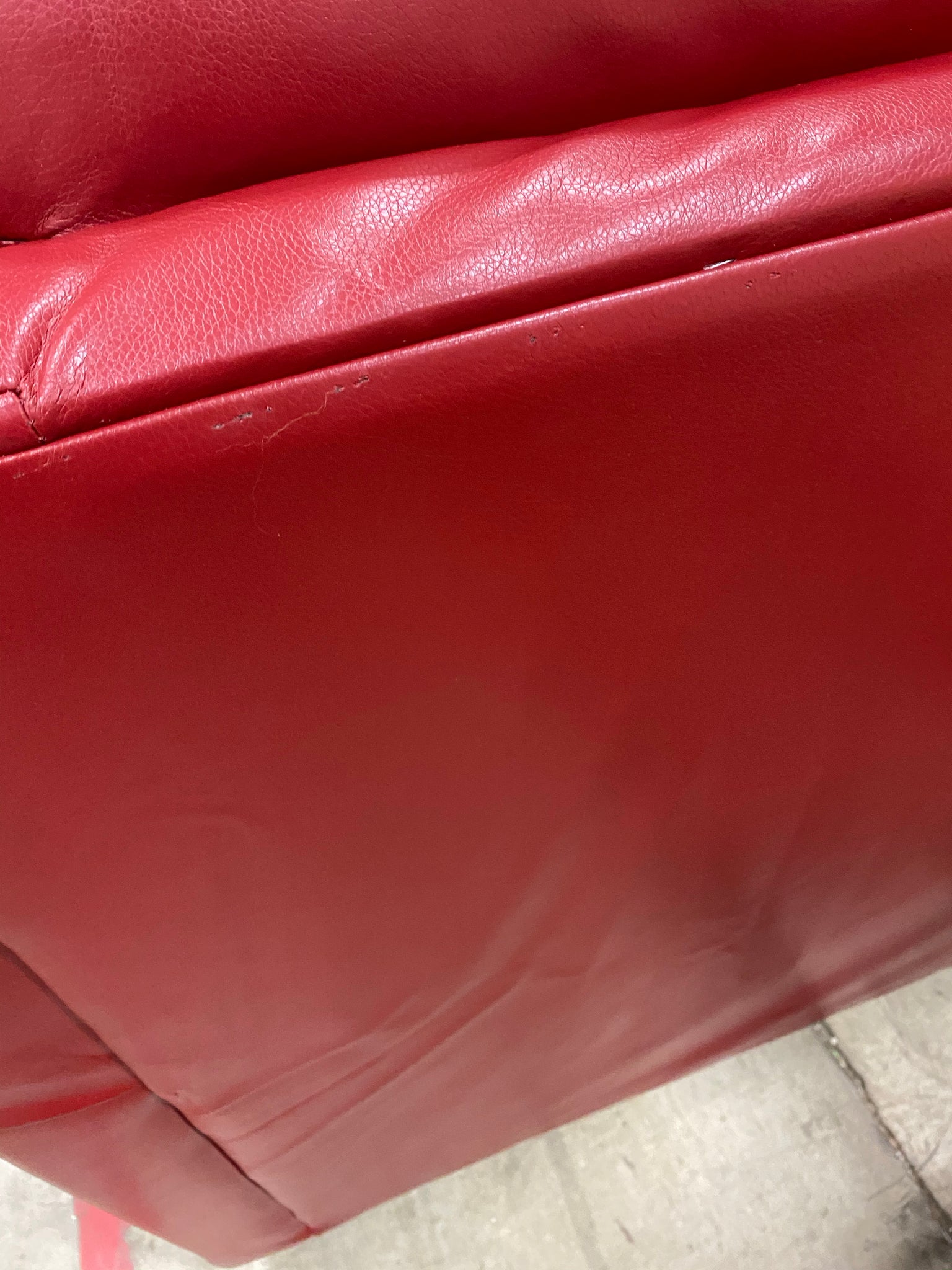 Please Note: Item has small scratch on back of center headrest; Slight scuffs on back top edge due to shipment; exposed staple on back edge. See photos. Item in otherwise great condition.