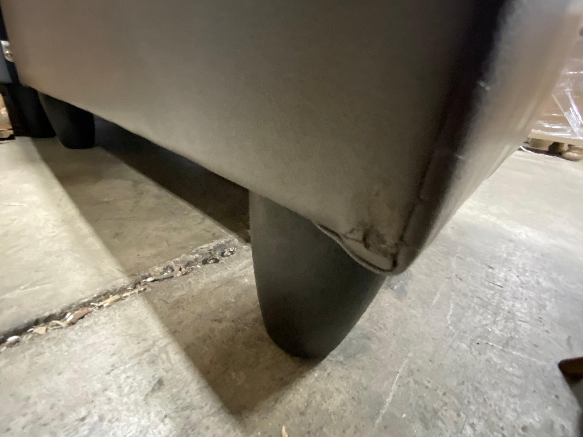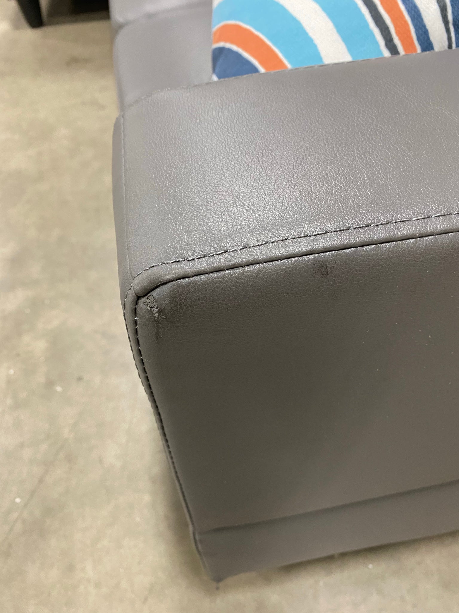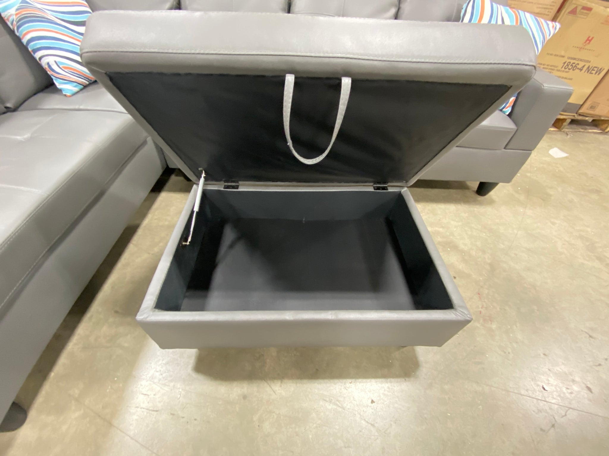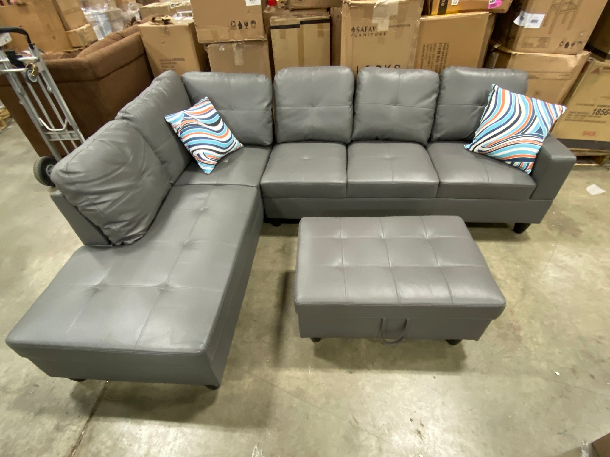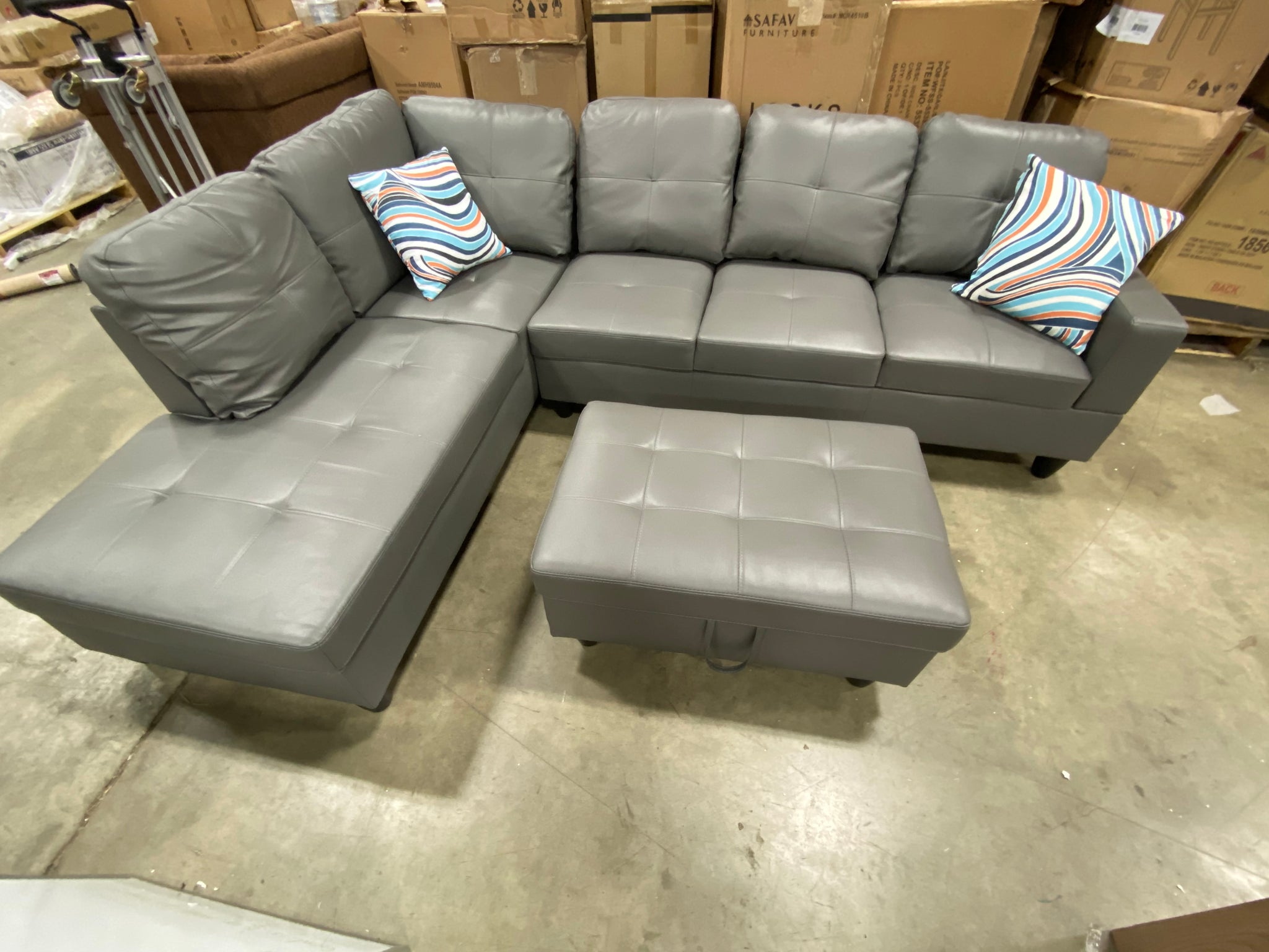 Out of box 103" sectional with ottoman in Dark Gray faux leather.