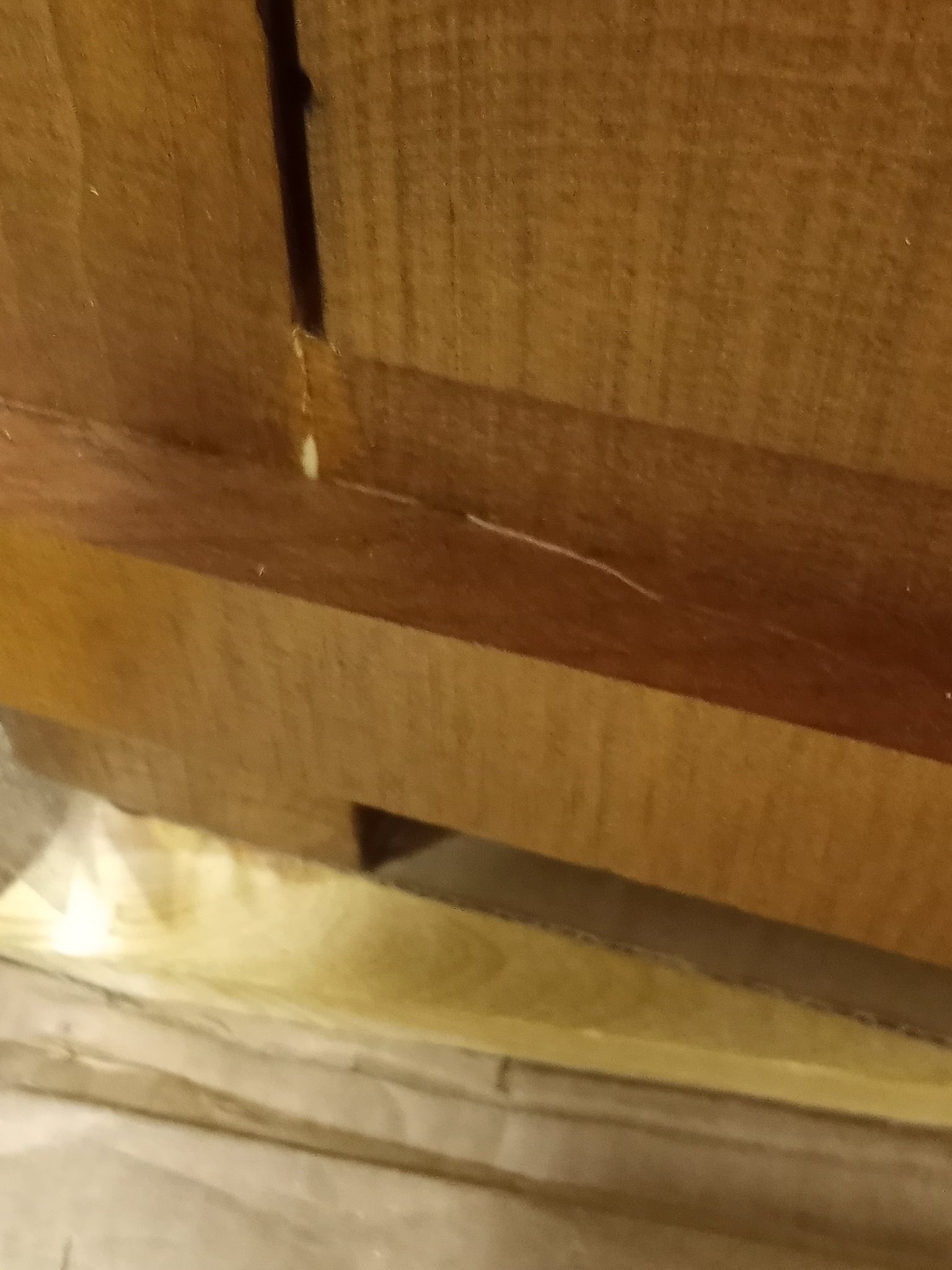 Note: On the back of the front left leg has a piece chipping off. The bottom right corner has a chip. The middle drawer has a scuff to the left of the handle and the back left corner has some minor chipping. See pictures for more details.